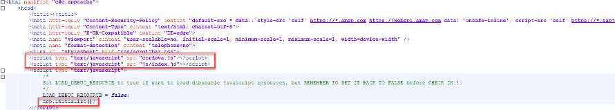 可以看到这里加载了两个js文件,运行了一个app.initialize()方法. 这个方法被定义在加载的第二个js文件js/index.js里面,打开这个index.js文件之后发现的确是这里的initialize 方法加载了sap的UI标准库,主题库,语言等。