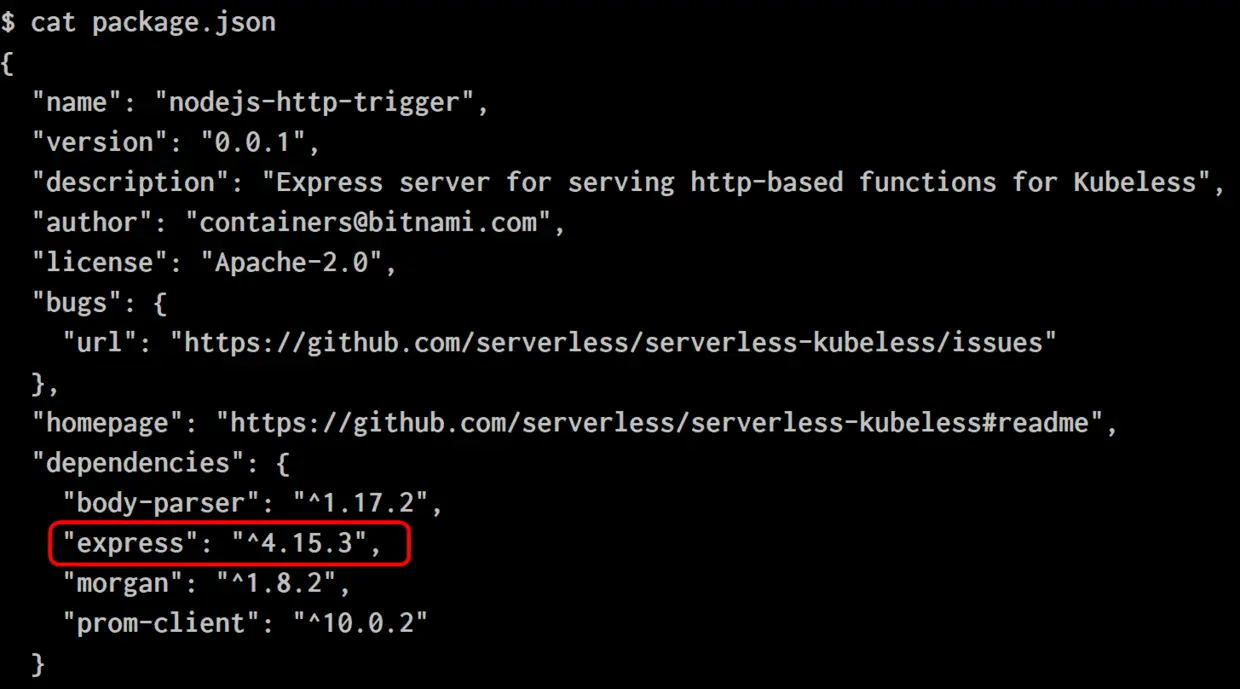 Express的依赖定义在pod内部的package.json里: