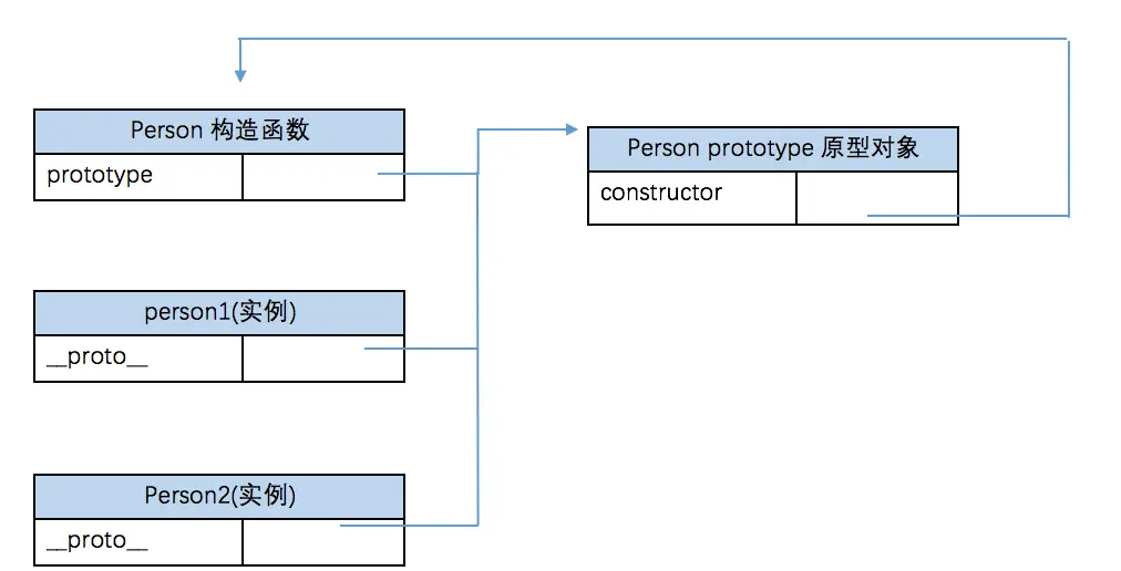每一个构造函数(函数对象)都有一个prototype属性,指向函数的原型对象;每一个原型对象都有一个constructor属性,指向构造函数;每一个实例都有一个__proto__属性,指向构造函数的原型对象