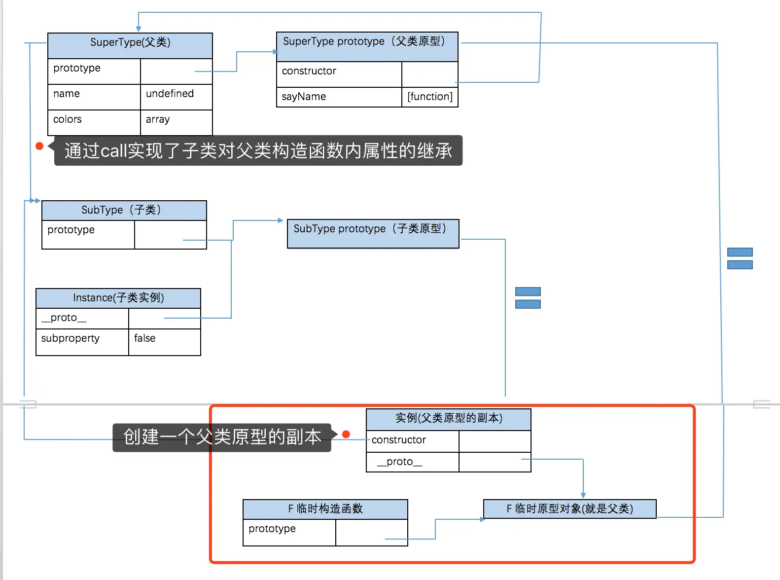 寄生组合式继承那个图,不知道我自己的理解对不对,要是我理解的有问题的话,大家指出来。很希望能跟大家一起交流一下,共同进步。