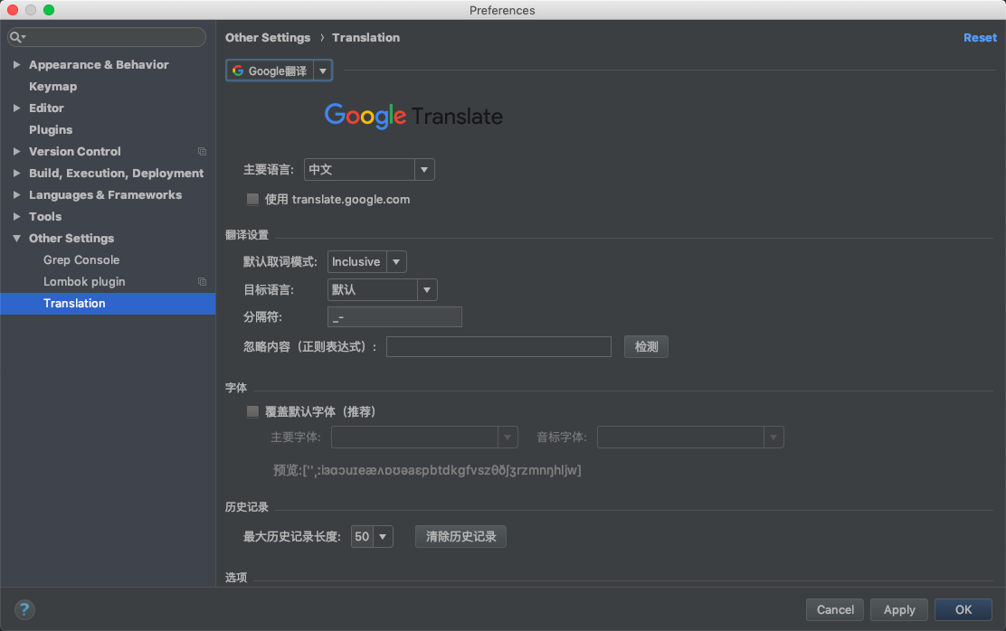 直接在idea中翻译,对于向本人英语不太好的,挺有用,看一些源码上的注释之类的。 idea中的设置
