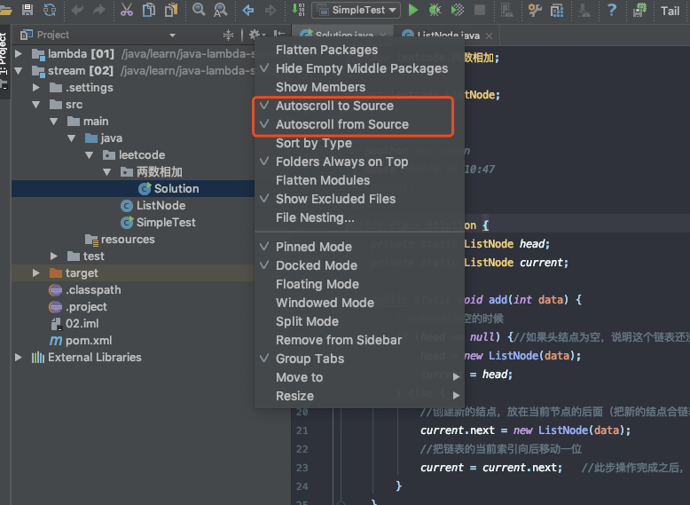 1、自动定位文件,个人喜好,方便文件多时,直接定位到相关目录