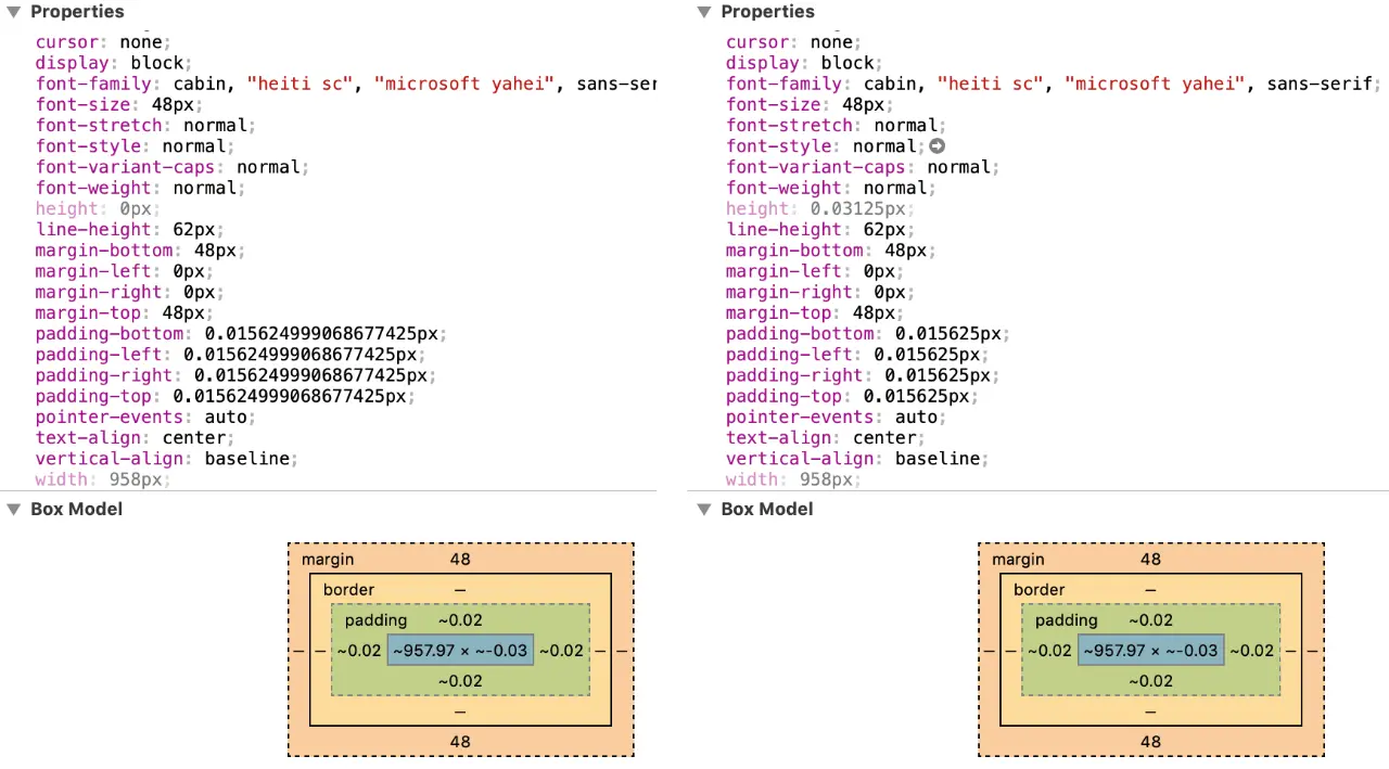 特别是在一些布局方案中,比如Flexible布局,vw布局或者%单位的运用等,不同的浏览器转换出来的值都带有不同位数的小数。