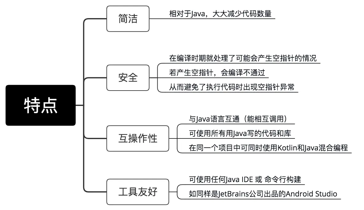 - 而Kotlin的优点则是可以尽可能避免执行代码时出现的空指针异常