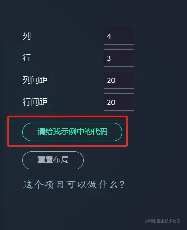 点击“请给我示例中的代码”就可以查看对应布局生成的 CSS 代码: