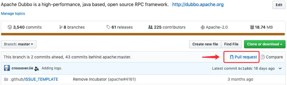 确认没问题后便可点击这里发起 pull request,后面按照引导执行即可。