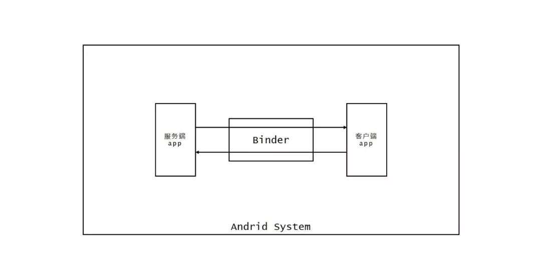 两个应用(进程)之间的通信是通过Binder作为桥梁来完成的,Binder是Android提供的一种用于进程通信的方式,这里把它简单理解为一个类即可。