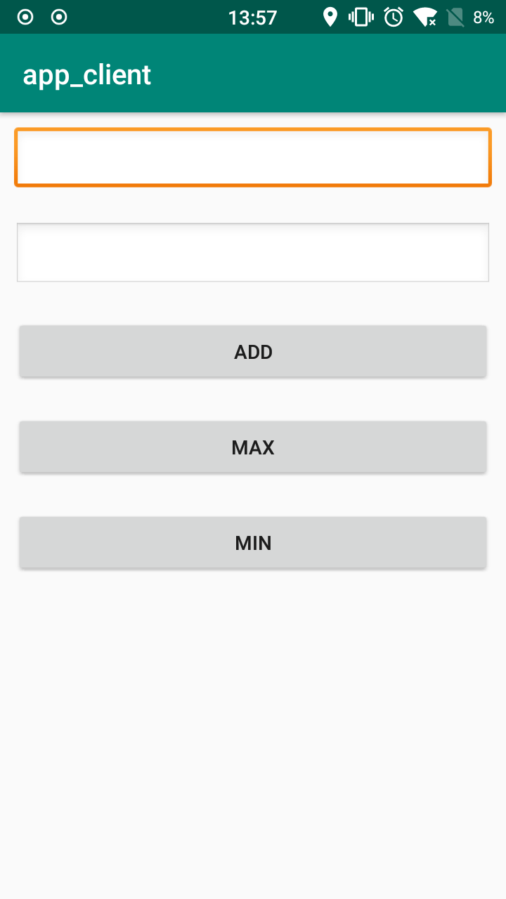 <?xml version="1.0" encoding="utf-8"?><LinearLayout xmlns:android="http://schemas.android.com/apk/res/android" xmlns:tools="http://schemas.android.com/tools" android:layout_width="match_parent" android:layout_height="match_parent" android:orientation="vertical"> <EditText android:id="@+id/et_number_x" android:layout_width="match_parent" android:layout_height="wrap_content" android:layout_margin="10dp" android:background="@android:drawable/edit_text" android:gravity="center" android:inputType="number" tools:ignore="UnusedAttribute" /> <EditText android:id="@+id/et_number_y" android:layout_width="match_parent" android:layout_height="wrap_content" android:layout_margin="10dp" android:background="@android:drawable/edit_text" android:gravity="center" android:inputType="number" tools:ignore="UnusedAttribute" /> <Button android:id="@+id/btn_add" android:layout_width="match_parent" android:layout_height="wrap_content" android:layout_margin="10dp" android:text="add" /> <Button android:id="@+id/btn_max" android:layout_width="match_parent" android:layout_height="wrap_content" android:layout_margin="10dp" android:text="max" /> <Button android:id="@+id/btn_min" android:layout_width="match_parent" android:layout_height="wrap_content" android:layout_margin="10dp" android:text="min" /></LinearLayout>