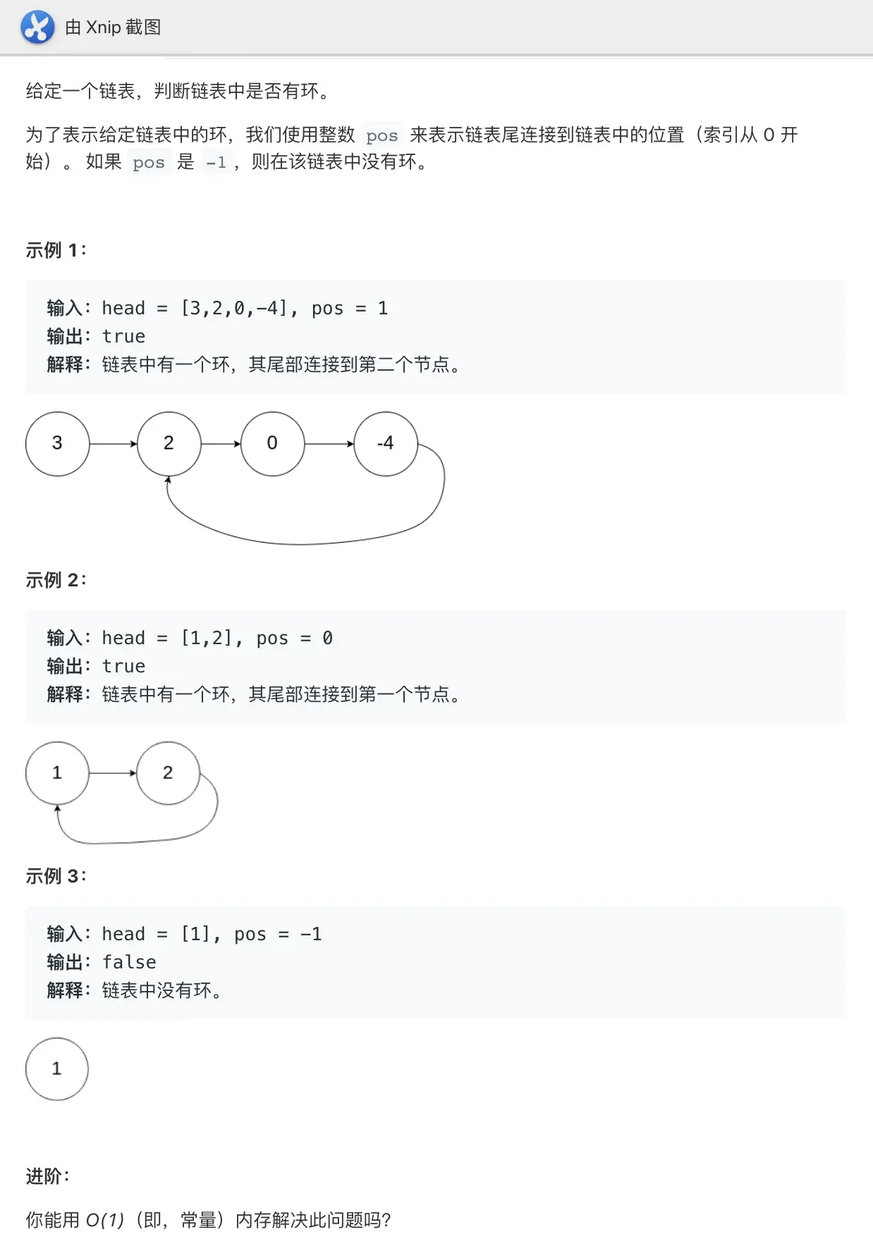 我们可以用一个 set 存下之前访问过的节点,如果再次访问了这个节点,则有环。