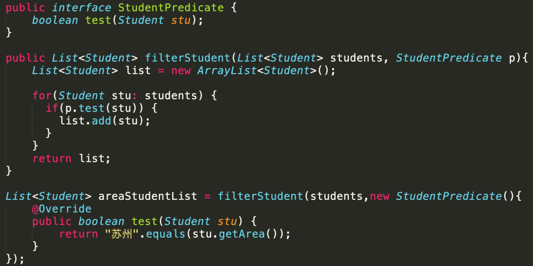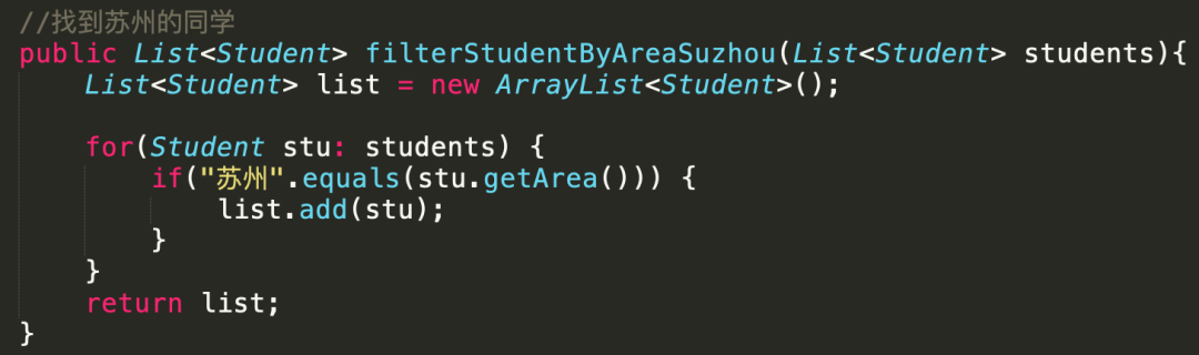 List<Student> areaStudentList = filterStudent(students,"苏州",0,false);