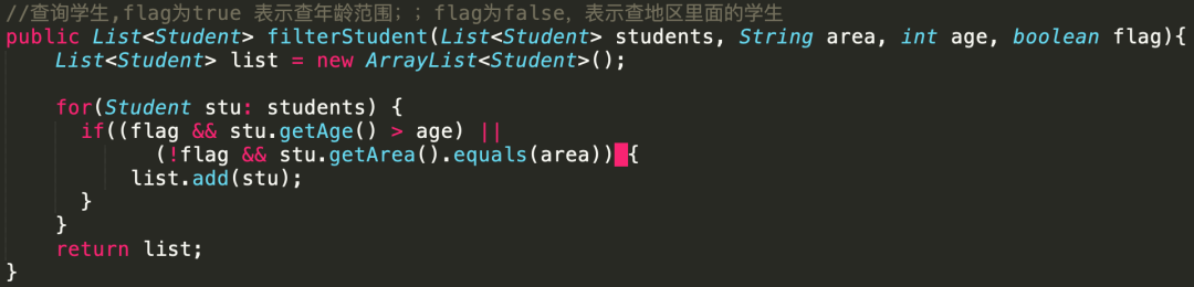 改为一个方法,flag为true 表示根据年龄范围查找学生;flag为false,表示查地区里面的学生