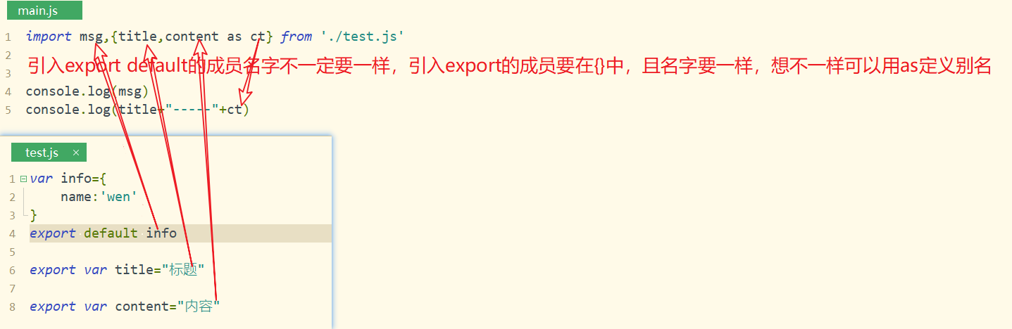 一个模块只能有一个export default,但export 却不限制,都是用来向外暴露成员