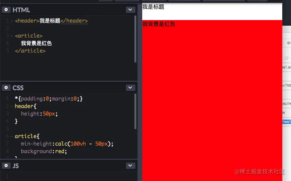 相信大家的第一反应就是calc(100vh - 头高度), 我也是, 然后写了个demo: