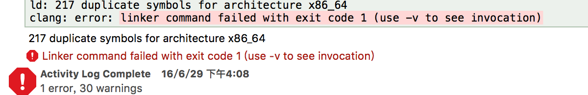 2,错误信息中出现了某个类的名字,去原文件中看看#import了哪些第三方库,把这些库挨个注释排除,找到出错的那个库,然后按照官方提供的步骤重新添加一遍。