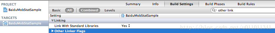先重复第一步过程,然后找到 Build settings->Linking->Other Linker Flags