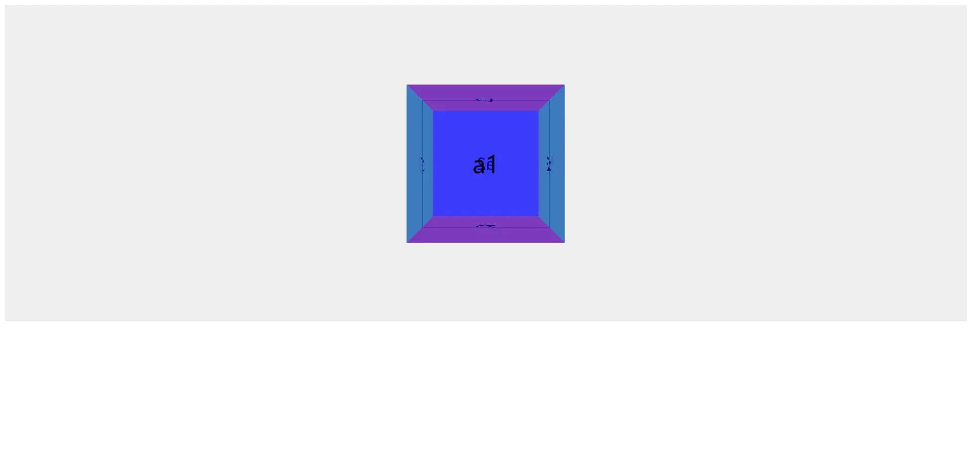 }此时已经看出3d效果生效了,因为近大远小的原理,虽然都是200px的长宽,离我们更近的a1面比box的边框要大出一圈,而较远的a2则要小一圈