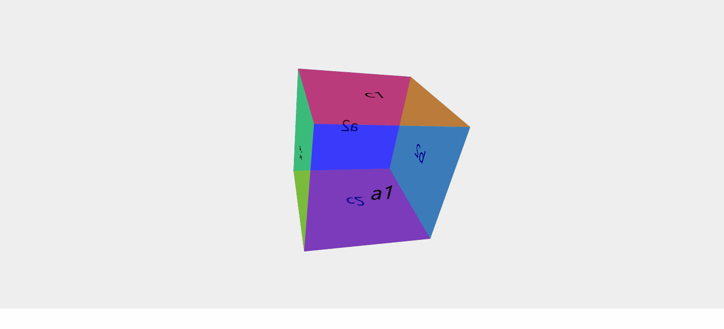 将六个面两两一组分为a, b , c三组方便描述:a1为离我们最近的‘前面’,a2就是与a1相对离我们最远的‘背面‘,b1为左侧的面,b2为右侧面,c1为顶部,c2为底部(参考文章顶部效果图)