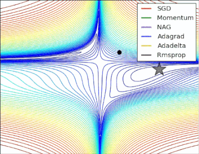 RMS Prop是指均方根传播,与动量类似,它是一种抑制y轴运动的技术。前面的示例有助于理解其原理。为了更好地理解,这里将y轴表示为偏置b,把x轴表示为权重W。