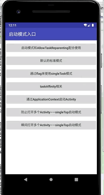 小姐姐提的bug我们不能不管,针对这个bug我们第一反应是做一个防止View的多次点击,不过这里我们有更好的选择。针对点击打开Activity这种操作,可以使用Activity启动模式——singleTop来解决,这种启动模式的核心就是,位于栈顶的Activity不会再次创建实例。