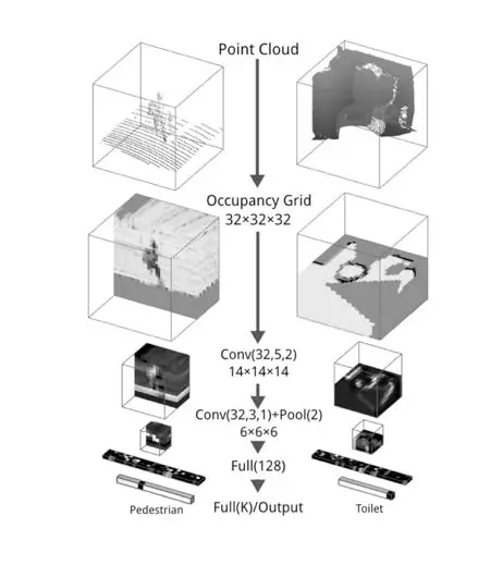 由于LiDar和RGBD扫描仪应用越来越广,点云数据库也在逐步扩大,因此,为了利用此数据库,第二篇论文提出了“VoxNet”。该结构旨在通过将空间占用网格表示与监测到的三维卷积神经网络(3D CNN)相结合以解决广域点云处理和标记问题。