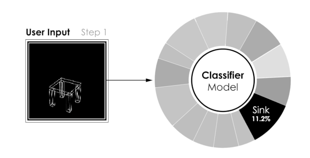 · 分类:识别用户正在绘制的物体类型,即:为任何给定的图像输入找到正确的标签(“椅子”、“长椅”、“床”等等),并附上预测置信度得分。