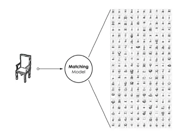 在第二步中,CNN模型试图在大量的3D模型数据库中找到理想的匹配对象。如果说分类模型有助于缩小搜索范围,匹配模型则是将给定组中所有的三维模型按相似程度由高到低排列。