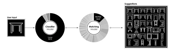 当为单个分组处理匹配模型时,我们现在可以将分类模型与匹配模型结合。处理一个输入图像时,将首先对该图像进行分类,随后将其与数据库中相似对象进行匹配。同时,CNNs会输出预测置信度以帮助衡量原始模型与实际匹配对象之间的相似度。