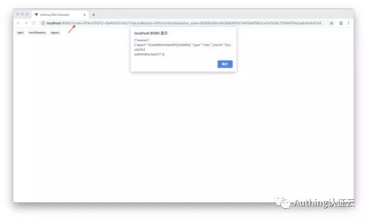 点击 trackSession 按钮,会显示当前登录状态。