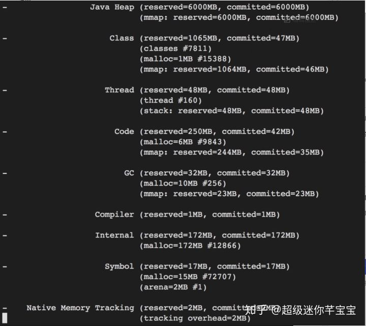 2.排查Java堆外内存还是比较麻烦的,推荐先用NMT查查,用起来比较简单,配置JVM参数即可,可以看到内存申请情况。