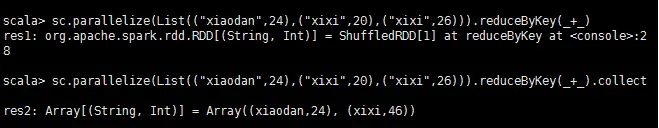 // 进行聚合操作 // tuples.reduceByKey((x, y) => x + y) val sumed: RDD[(String, Int)] = tuples.reduceByKey(_+_)