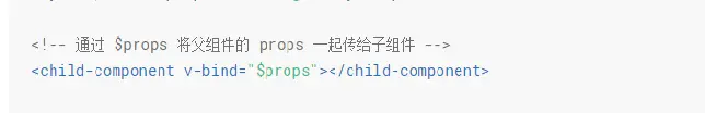当隔代(多代)的关系需要进行props传递的时候,一个个对应好像很麻烦、也很难扩展,可以尝试用一次性传递。