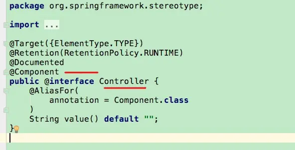 原来@Configuration、@Controller、@Service这些注解其实都是@Component的派生注解,我们看这些注解的代码会发现,都有@Component注解修饰。而spring通过metadata.hasMetaAnnotation()方法获取到这些注解包含@Component,所以都可以扫描到。如下: