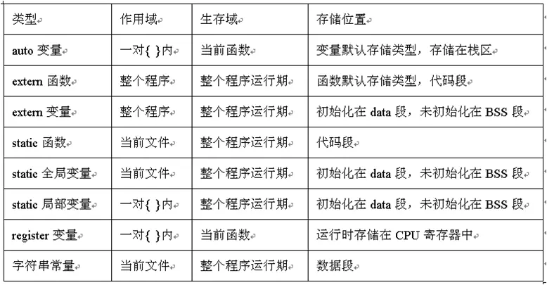 C各存储类型比较
