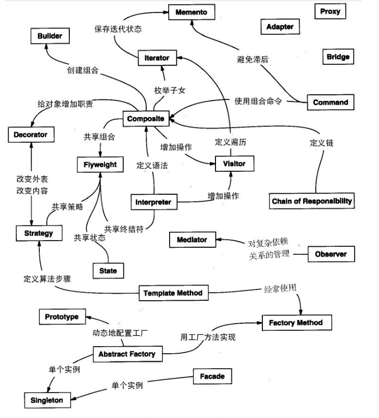 设计模式分为创建型、结构型模式、行为型模式,通过借来一张图来表示一下
