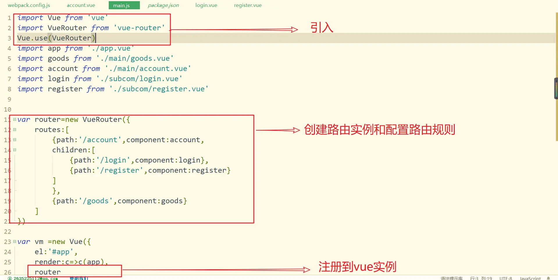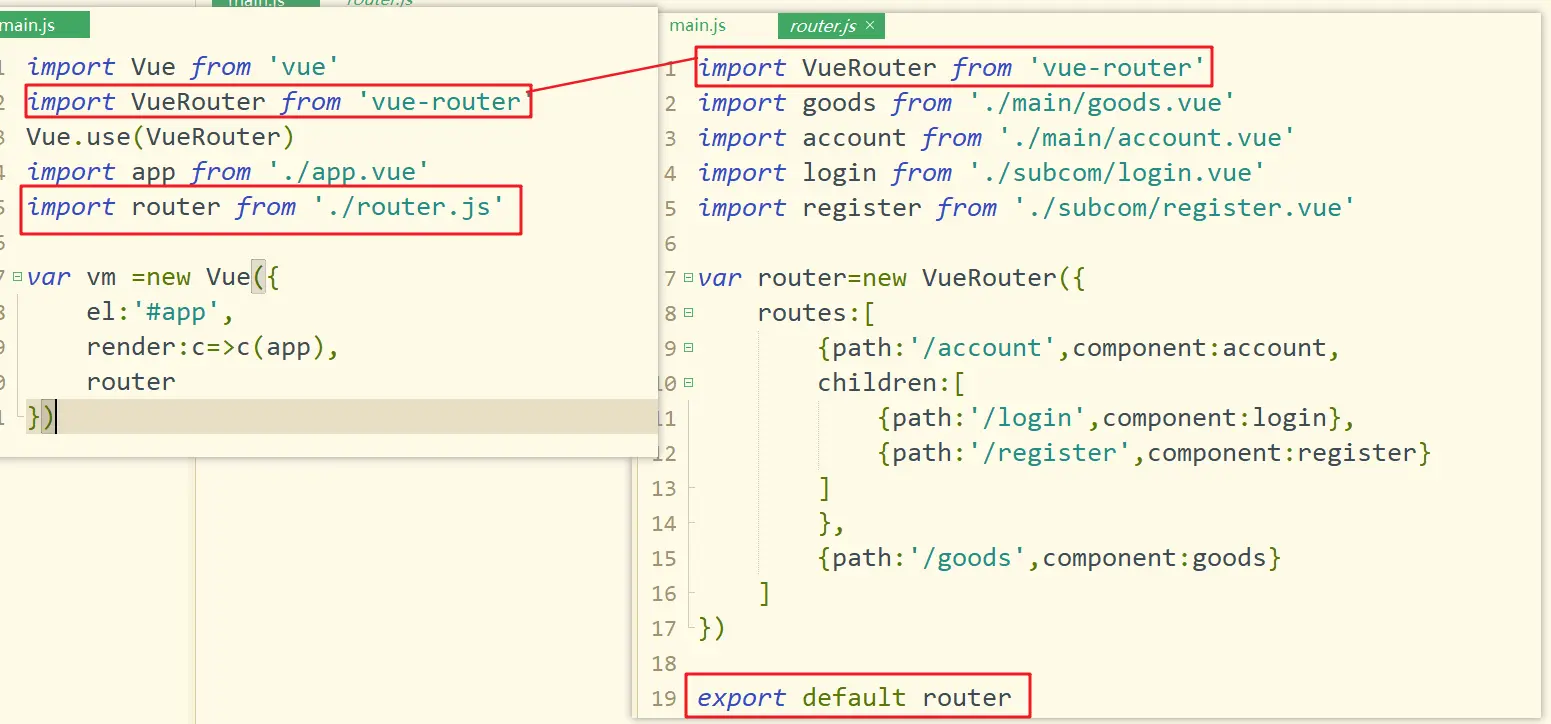 在src下创建router.js,将main.js的部分代码复制和剪切到router.js