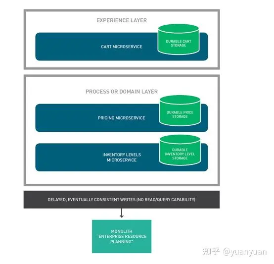 2.在处理现有资产(如ERP)时,必须使用“扼杀”模式,用新的微服务架构逐个替换现有系统的数据存储。