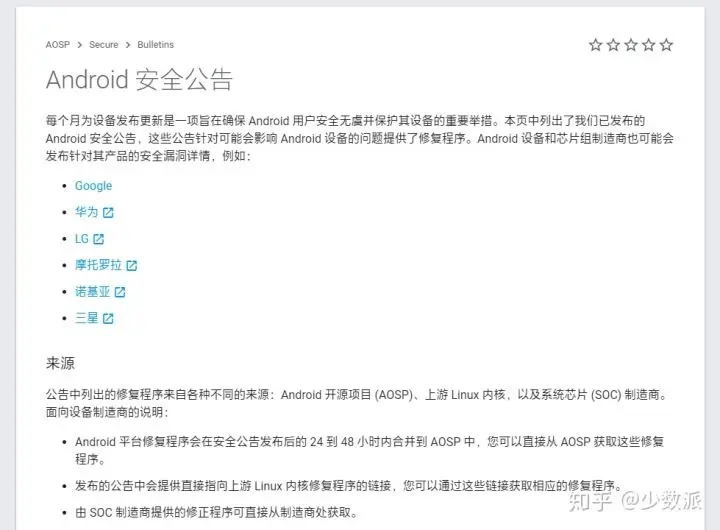 虽然效率算不上高,但这其实已经是 Android 生态内推送最为频繁的安全更新机制了。对一些技术能力/精力有限的 OEM 厂商而言,安全更新补丁版本滞后的现象非常严重。