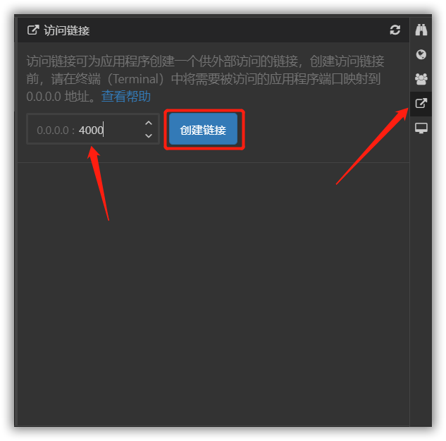 需要注意的是:端口改为4000,选择创建链接,然后点击创建的链接即可访问。