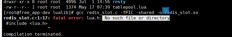 坑二:我把redis_slot.c文件放在openresty安装目录下的lualib下(我考虑到编译需要lua的脚本)当我开始编译的时候发现报错说是:fatal error:lua.h:No such file or directory
