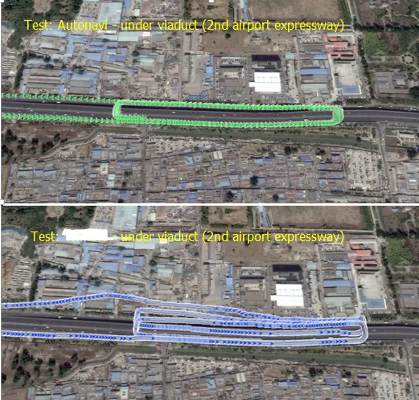 - 偏航重算:是指在高架或城市峡谷,信号遮挡引起位置点漂移;