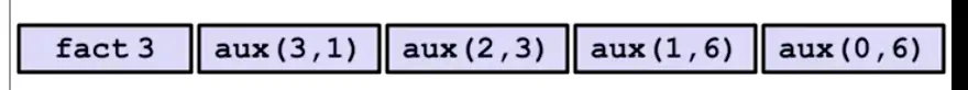 let fun aux(n,acc) = if n=0 then acc else aux(n-1,acc*n)