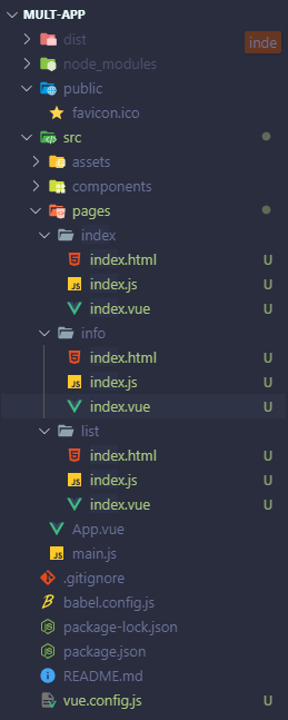 多页面其实就是指定多个入口,并且指定每个入口js文件的挂载点, 然后入口js文件负责将vue文件引入,渲染到当前模板的 #app 节点上