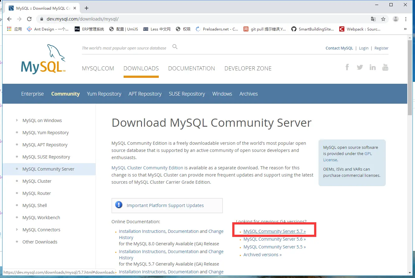 5.点击mysql版本号下载对应链接,这里我选的是5.7