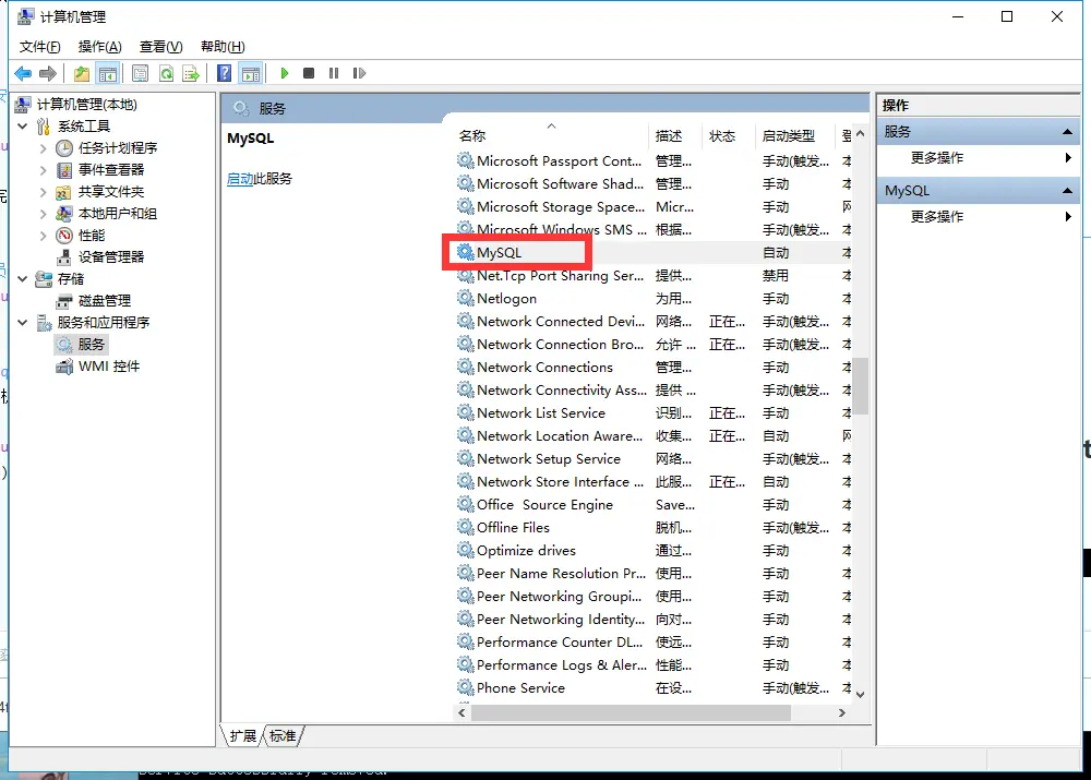 可以打开计算机->管理->服务里面查看服务名 一般默认是mysql