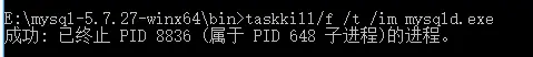 taskkill/f /t /im mysqld.exe杀死mysql相关进程: - 接着