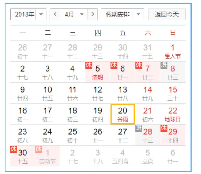 可参考4月的日历来理解上面的结果: