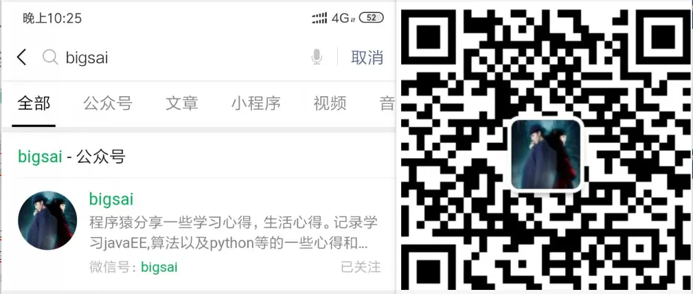 后端、爬虫、数据结构算法等感性趣欢迎关注我的个人公众号交流:bigsai。回复爬虫,数据结构等有精美资料一份。