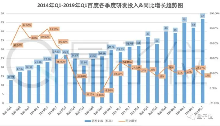 这种坚定投入也直接体现在财报中。第二季度,百度研发支出47亿元,占比总营收17.9%,同比增长了17%。