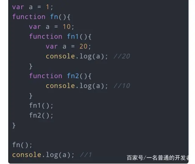 - 最后在最外层打印出变量a,直接从变量a的作用域即全局作用域内寻找,结果为1。