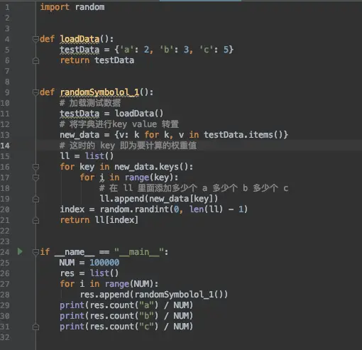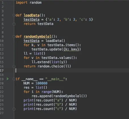 还可以算出每个的概率,然后在100 个中去生成原来的key,再去random.choice() 这 100 个key。